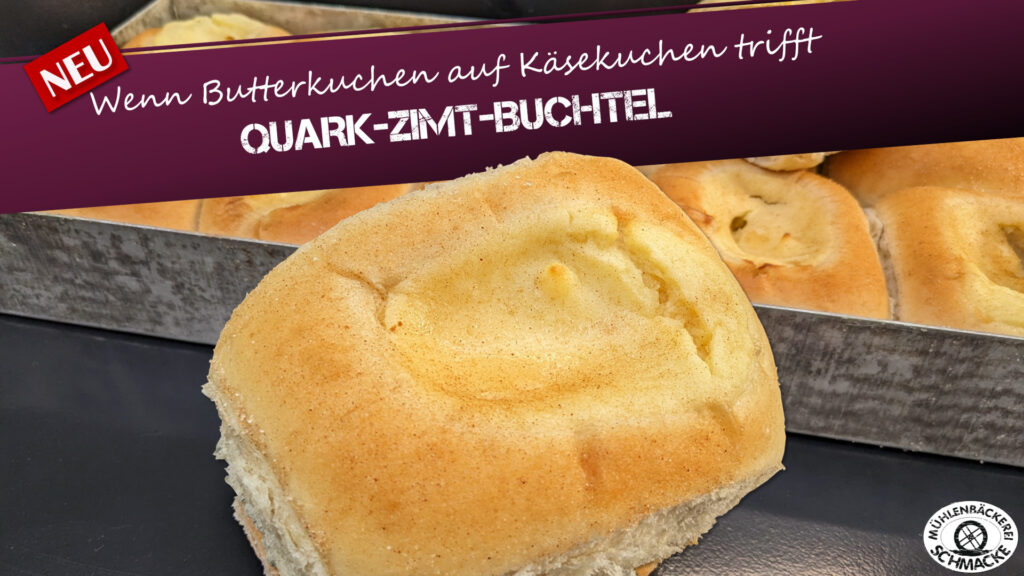 Unsere QUARK-ZIMT-BUCHTEL vereint zwei Klassiker unseres Sortiments zu einem neuen, besonderen Genussmoment. Die Basis bildet unser bewährter Butterkuchenteig – locker, saftig und in echter Handarbeit hergestellt.